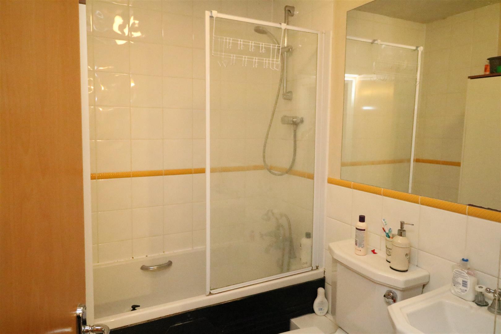 With panelled bath with tiled walls over and around forming a splashback for the shower. The bath is fitted with a Victorian telephone type shower/mixer tap and there is an independent shower also over with screen. Matching pedestal wash hand basin and low level wc suite, shaver point, extractor fan and radiator.