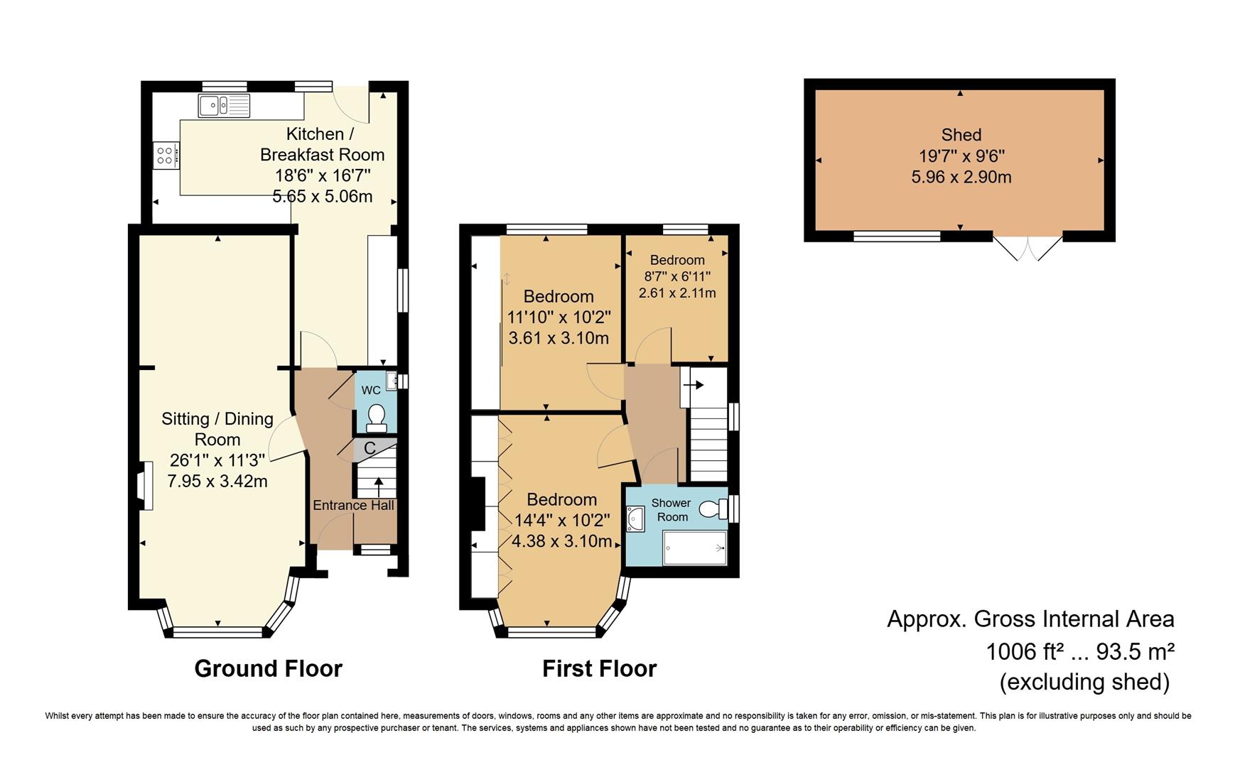 Upstairs off a central landing the property has three bedrooms, two of which have built in banks of wardrobes. The main bedroom has the stylish bay window to the front. A stunning shower room services the bedrooms.
