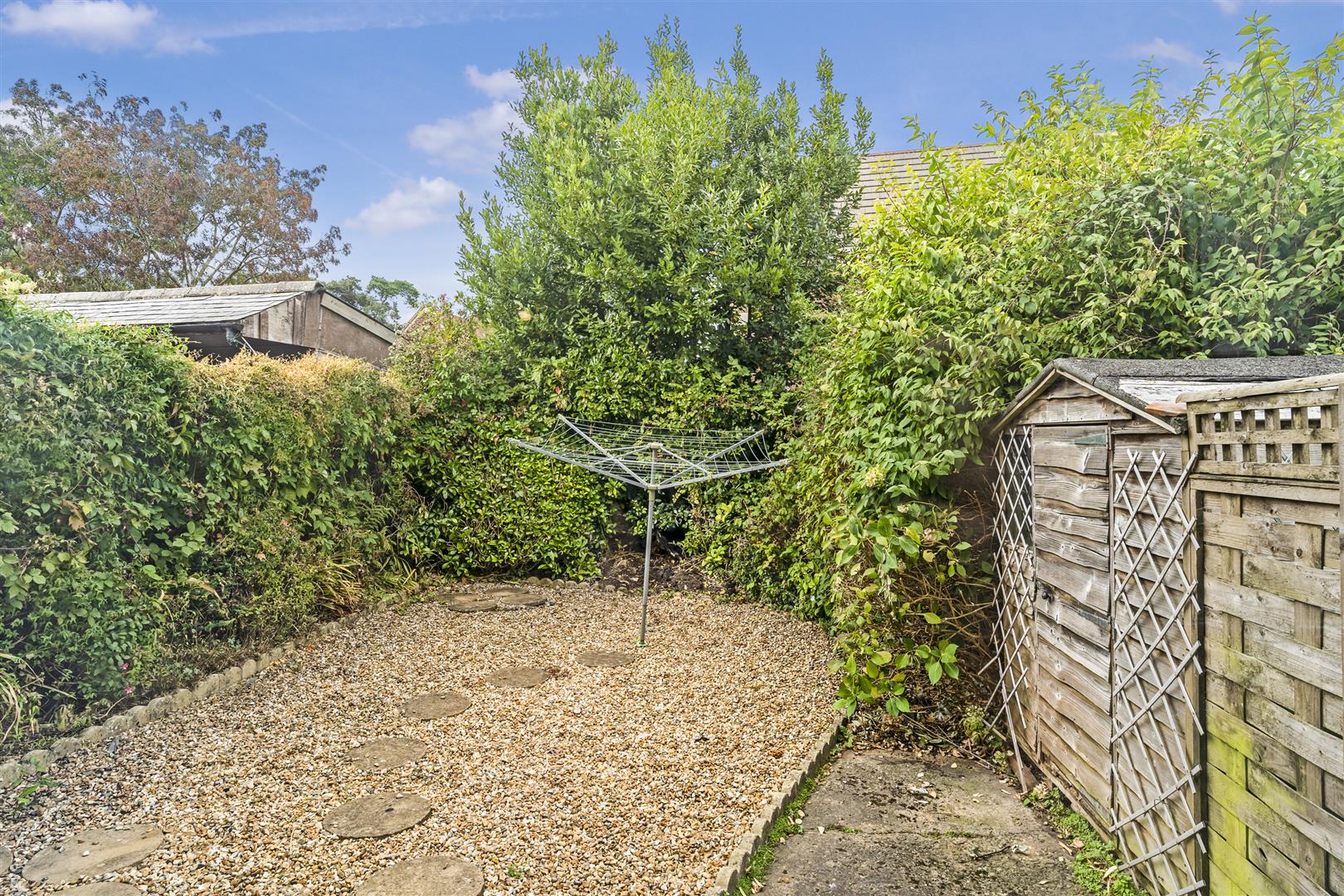 - Rear garden with shed with power, and mature planting