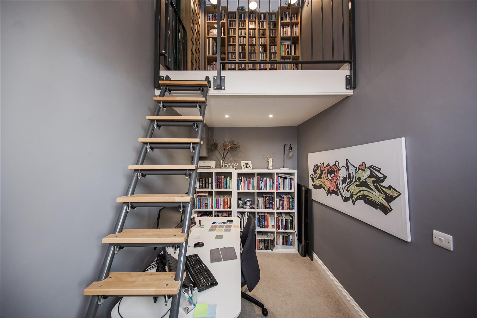 A great bedroom currently set up as an office and library. Double height vaulted ceiling with ladder to mezzanine floor to offer additional space. A double bed has been used in the past to ground level giving space on the mezzanine for storage and study area. Alternatively use the mezzanine as a bed area to free up the space below.