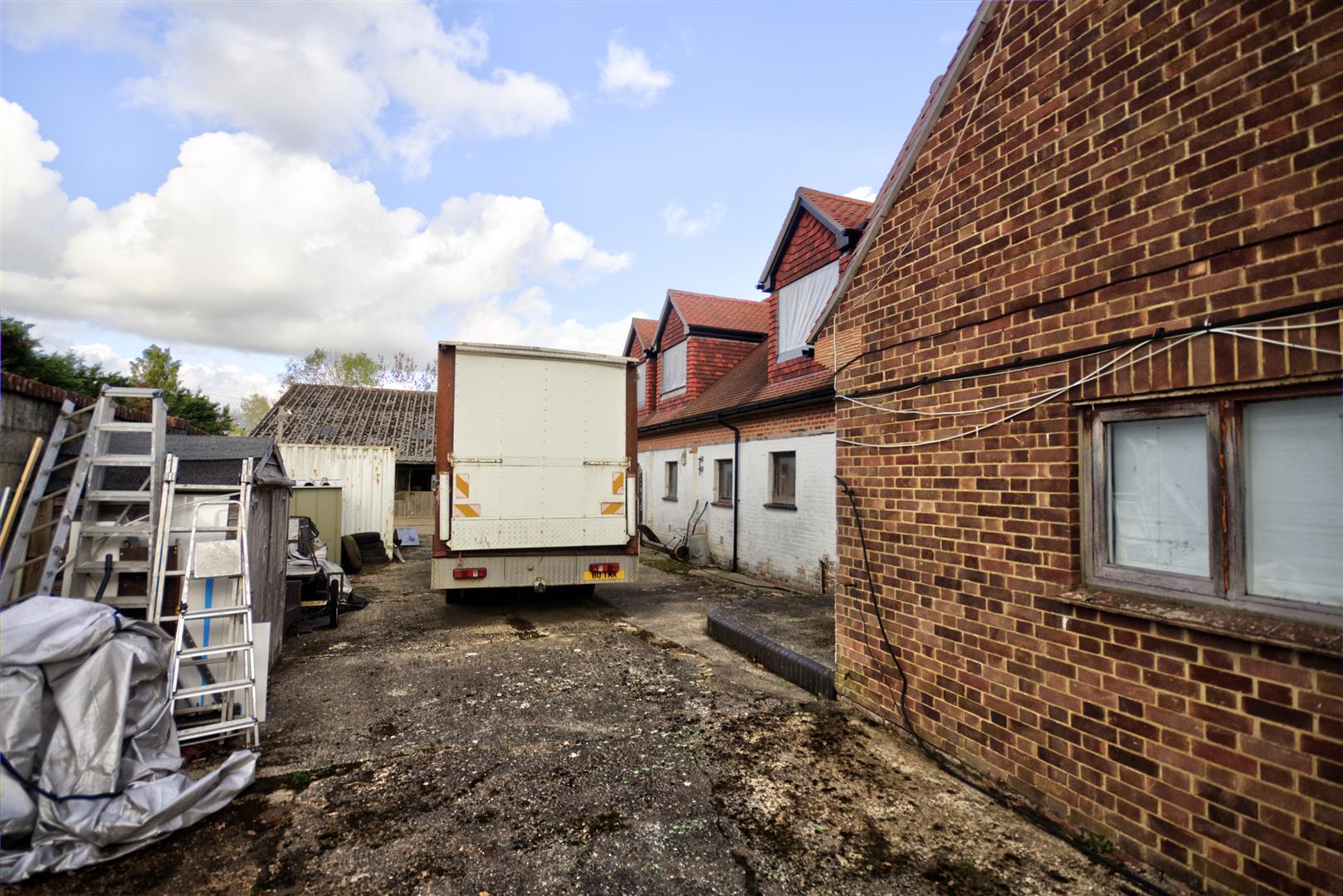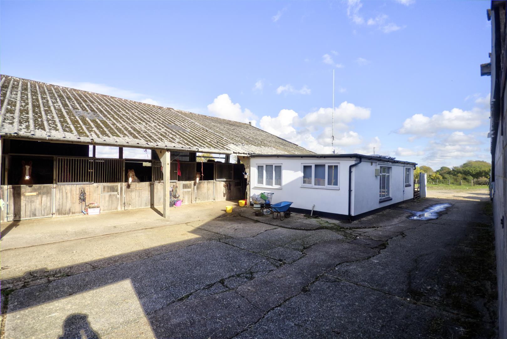 A yard area with a mix of ex-agricultural and equestrian outbuildings