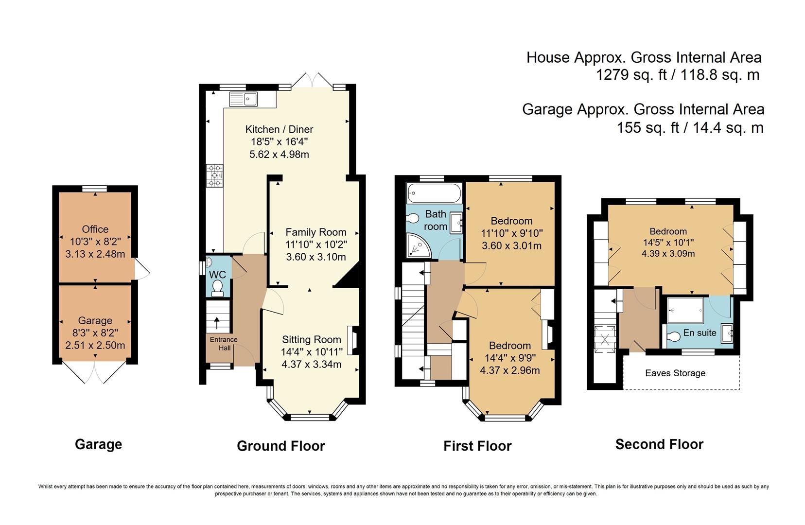 - 3 Double Bedrooms (main en-suite)
