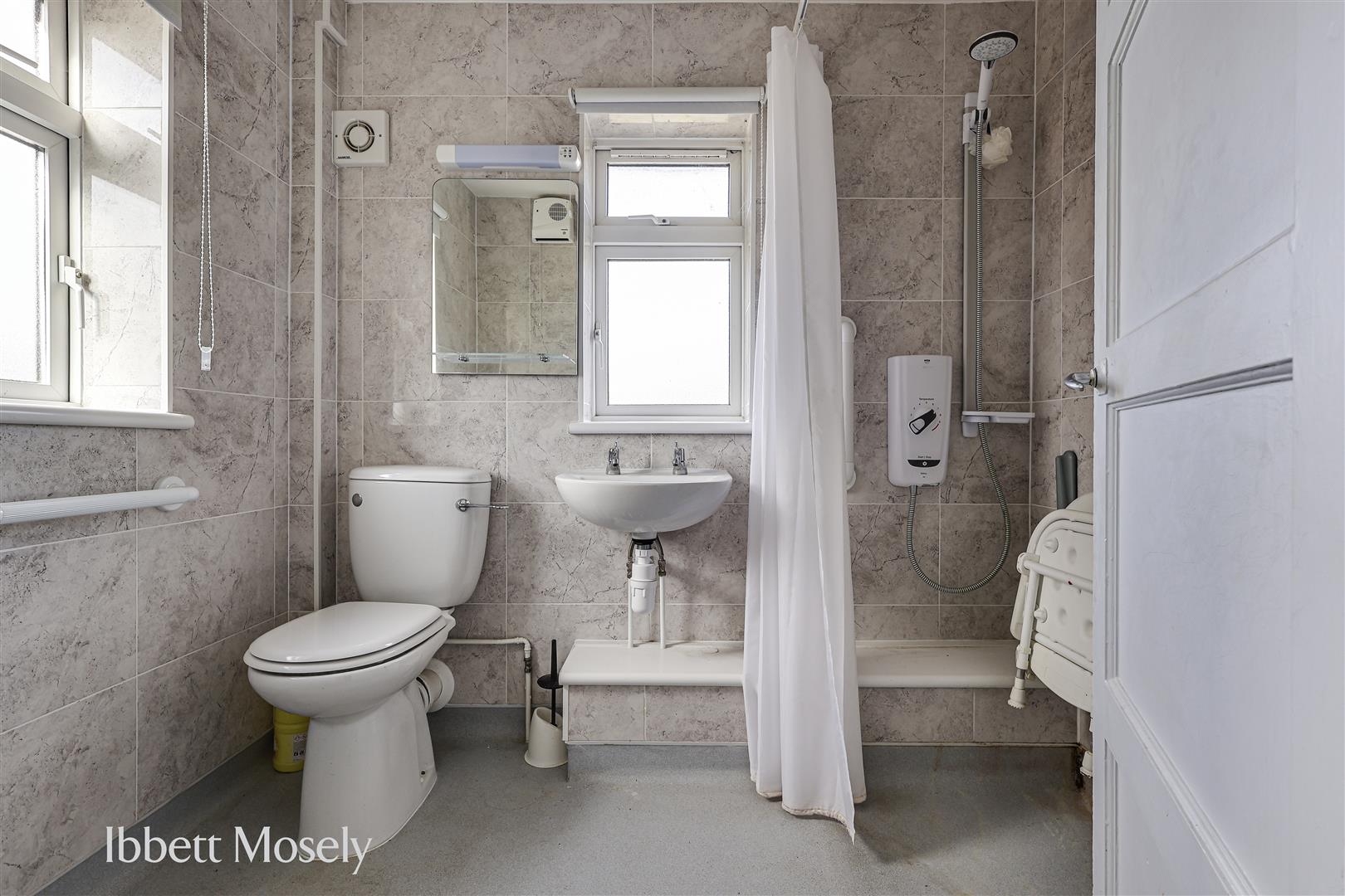 With shower, w.c. and hand basin. radiator, double glazed window, extractor fan and down flow electric heater.