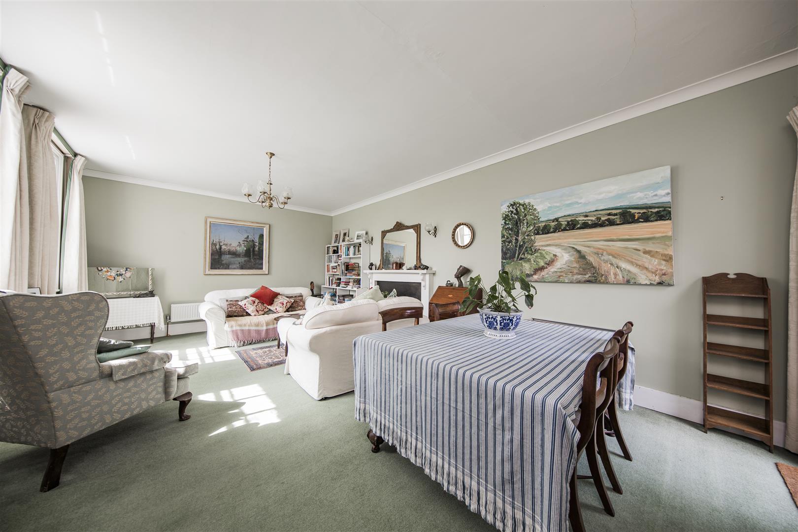 Spacious and elegant, this large reception room features a timber floor and a large window that floods the area with light. The room offers ample space for dining with a classic boarded up fire surround and neutral décor that complements the traditional furnishing style.