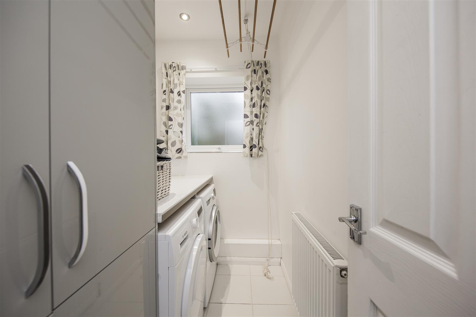 This handy Utility Room is neatly arranged with fitted cupboards providing excellent storage for laundry essentials. It includes space for both a washing machine and a tumble dryer, all finished with tiled flooring and a window to bring in natural light, creating a practical space for household chores. Plumbing is also provided for a water softener that is available via separate negotiation.