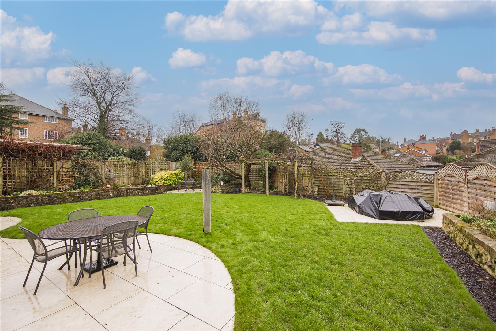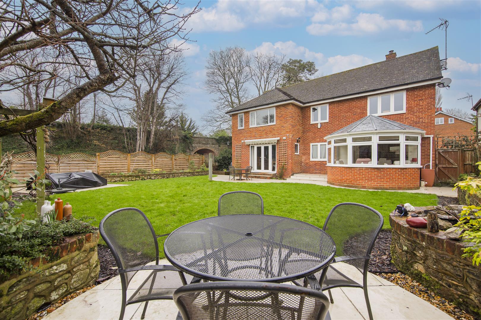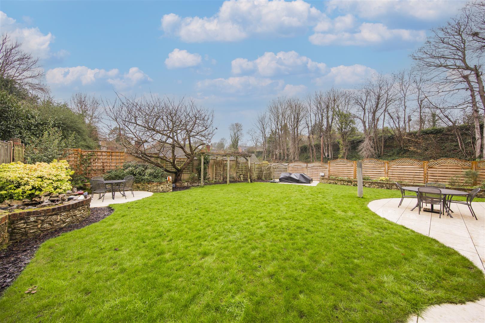 This well-maintained Rear Garden is a generous green space bordered by mature trees and shrubs, offering a peaceful and private outdoor retreat. It features various paved seating areas ideal for dining or relaxing, one with a gravel area suitable for a fire pit, along with well-kept lawn areas. The garden is well enclosed with fencing and natural borders, providing a quiet sanctuary perfect for family enjoyment and outdoor entertaining. In addition there are raised vegetable beds, wooden garden shed and wood store to the side of the house.