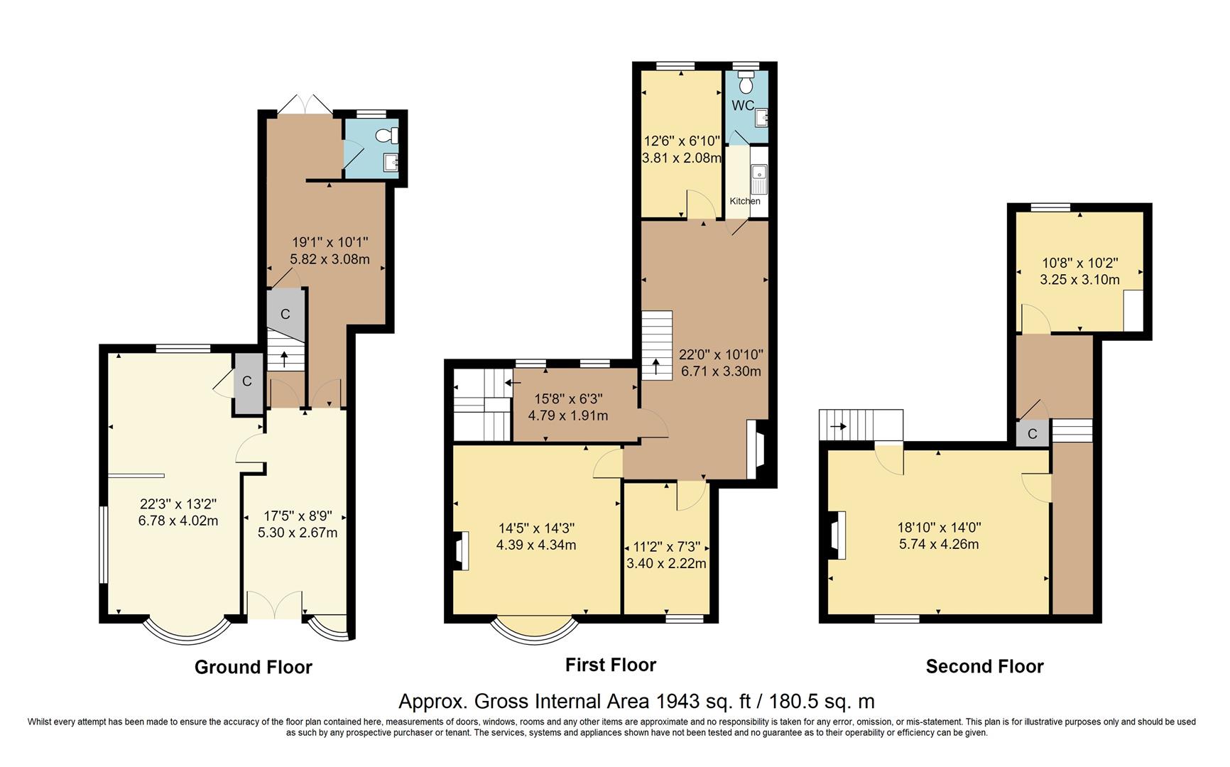 The accommodation has been measured in accordance with RICS Valuation Standards and comprises a total area of approximately 1943 square feet (180.5 square metres) net internal area.