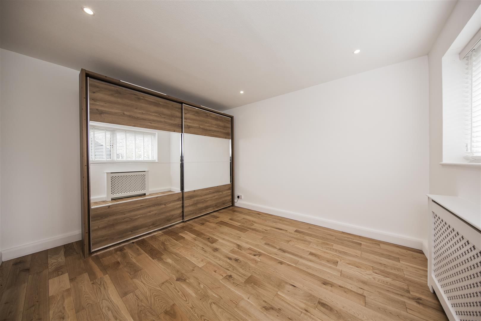 Double glazed door to front with blind. Range of built in wardrobes with sliding mirrored fronted doors. Laminate floor. Down lighting.