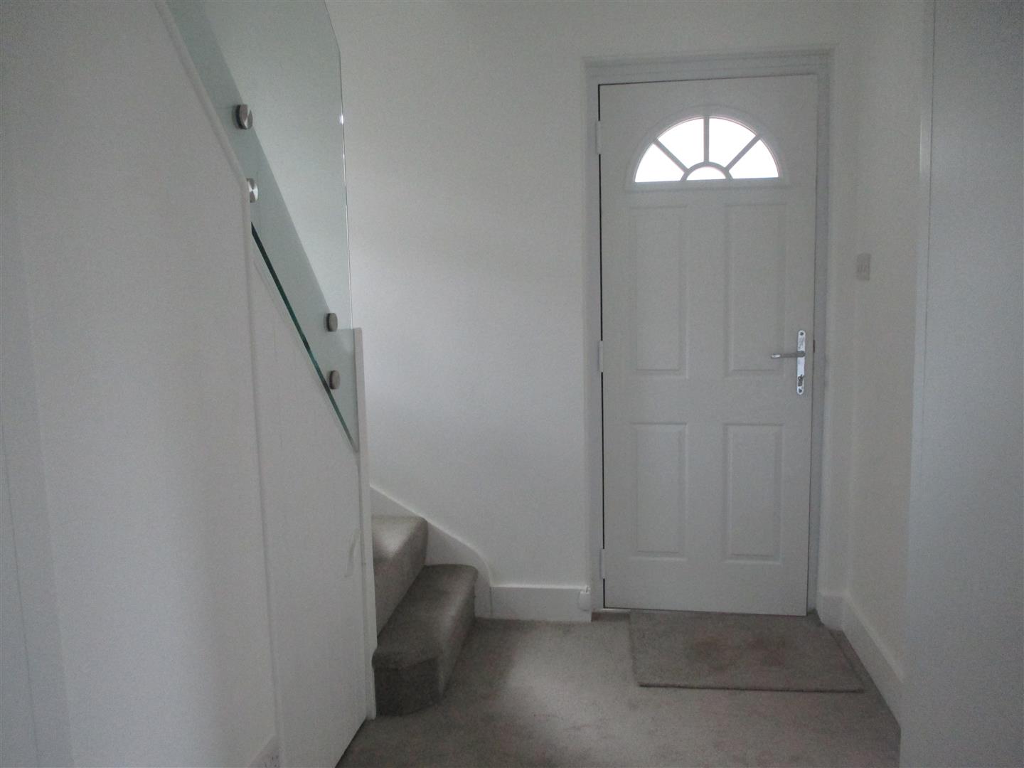 Staircase leading to first floor. Under stairs cupboard. Cloaks cupboard. Double glazed window to side.