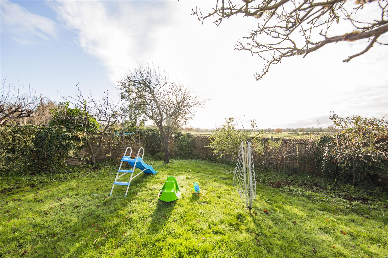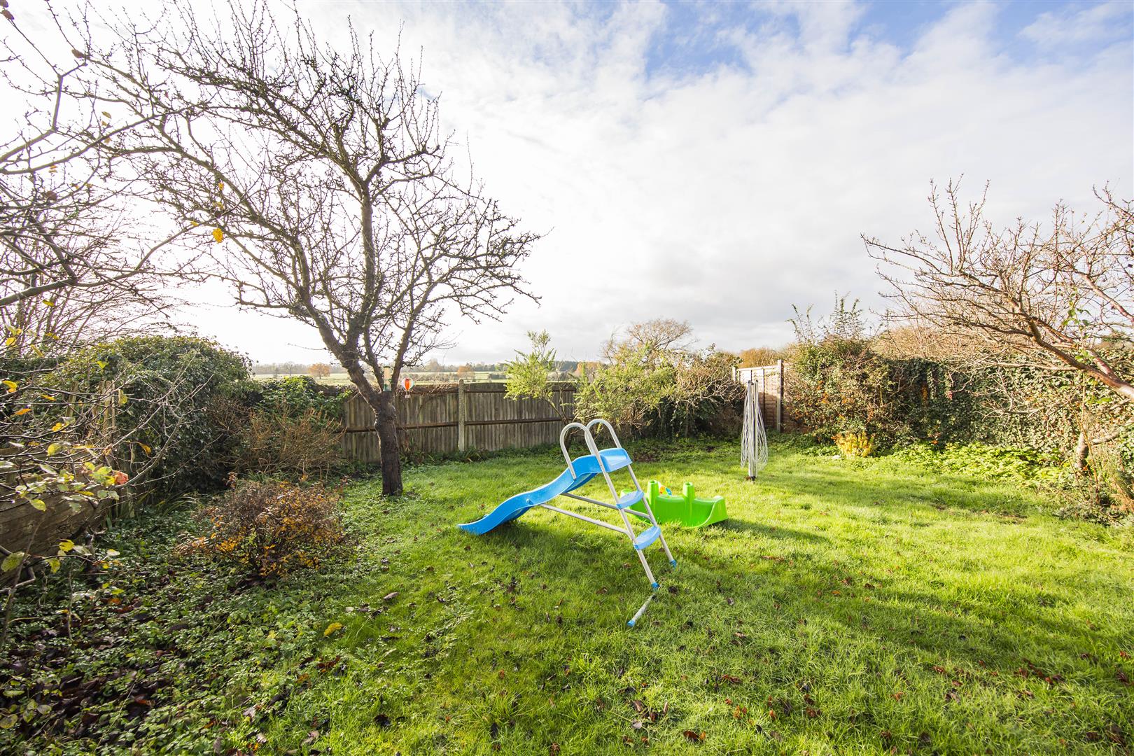 A paved patio providing a perfect setting for outdoor entertaining. Personal door leading to Garage. Mainly laid to lawn surrounded by a variety of shrubs and trees. Far reaching views over open fields. Wrought iron gate to side.