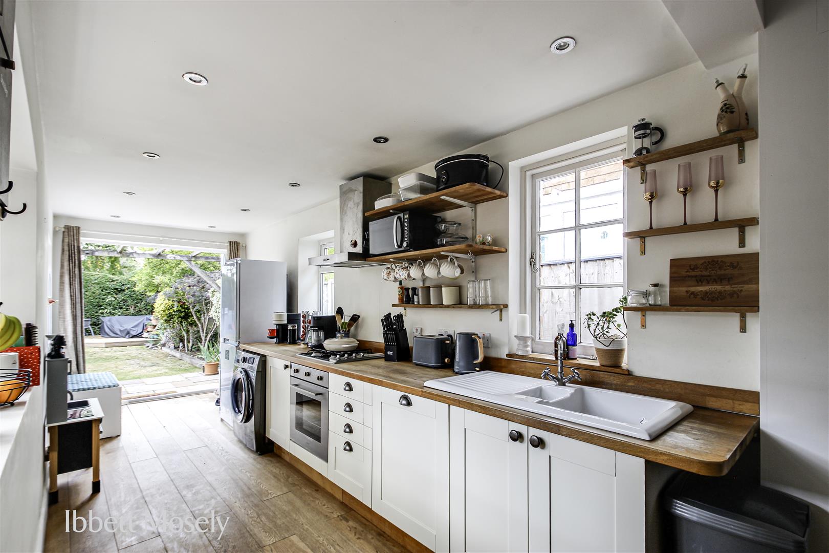 Internally, the property is well laid out and thoughtfully updated, beginning with a welcoming entrance hall into a snug and cosy lounge, perfect for relaxing after a long day. To the rear, you’ll find a generously sized kitchen diner, beautifully designed to accommodate both cooking and entertaining. With ample countertop and cupboard space, room for a dining table, and French doors opening directly onto the rear garden, this area is truly the heart of the home.