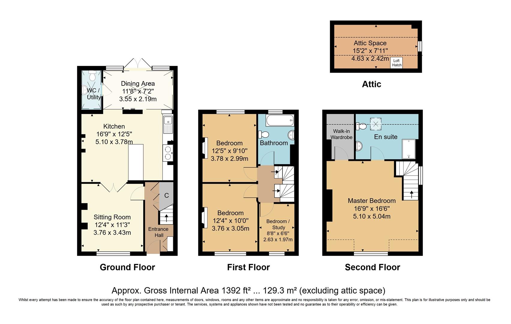 Upstairs, the property comprises four well-sized bedrooms, including an impressive principal suite on the second floor that features a walk-in wardrobe, en-suite and church views out the front window. A family bathroom serves the first floor which is modern with white tiles while a downstairs WC/utility room adds convenience to the ground floor.