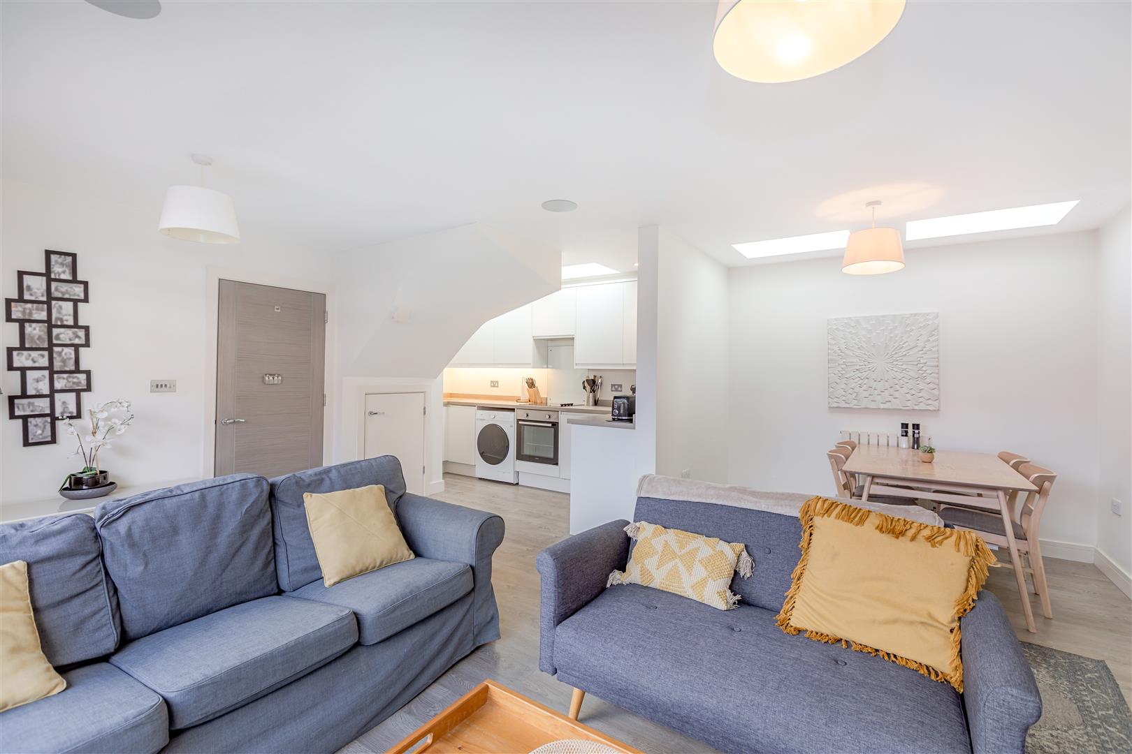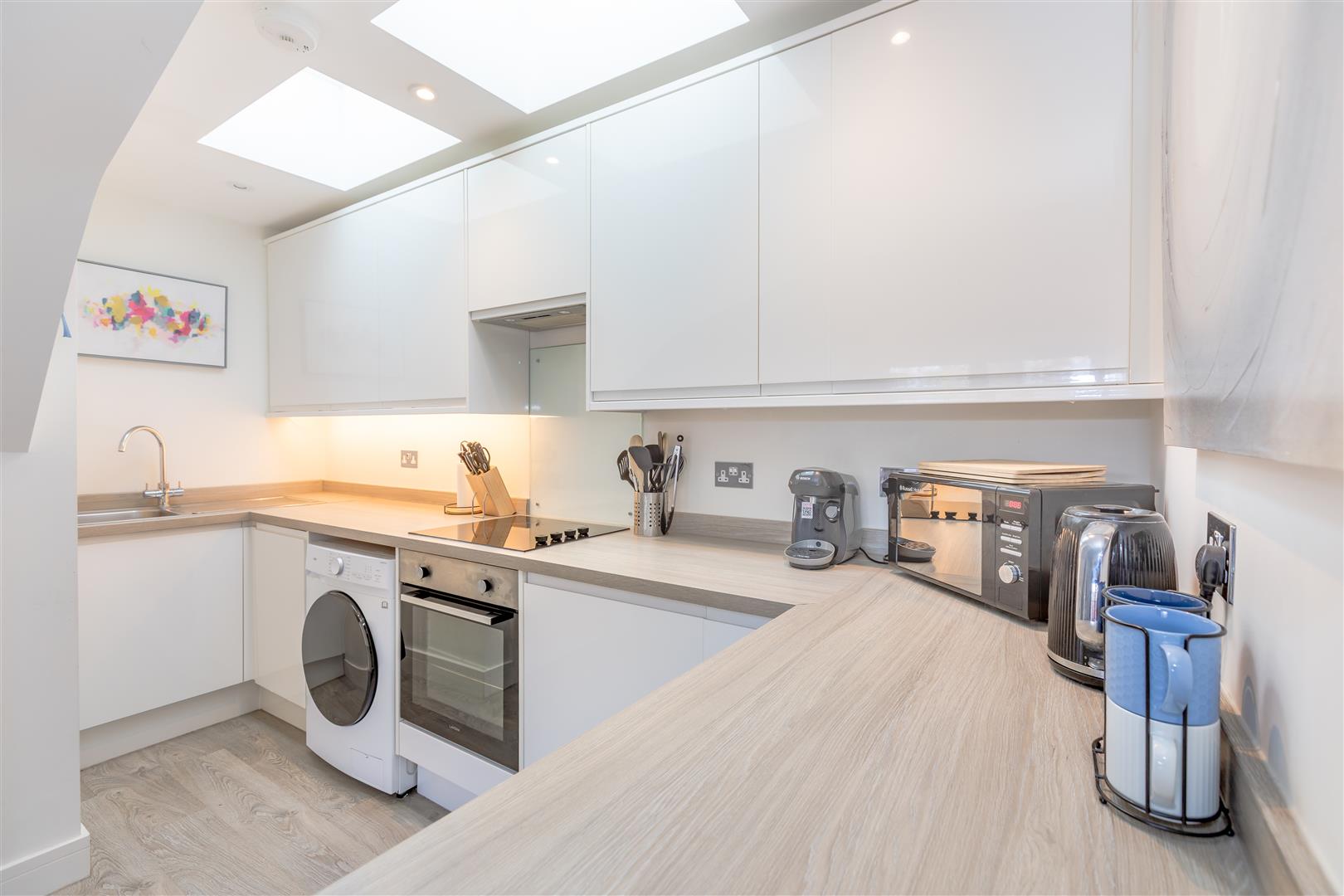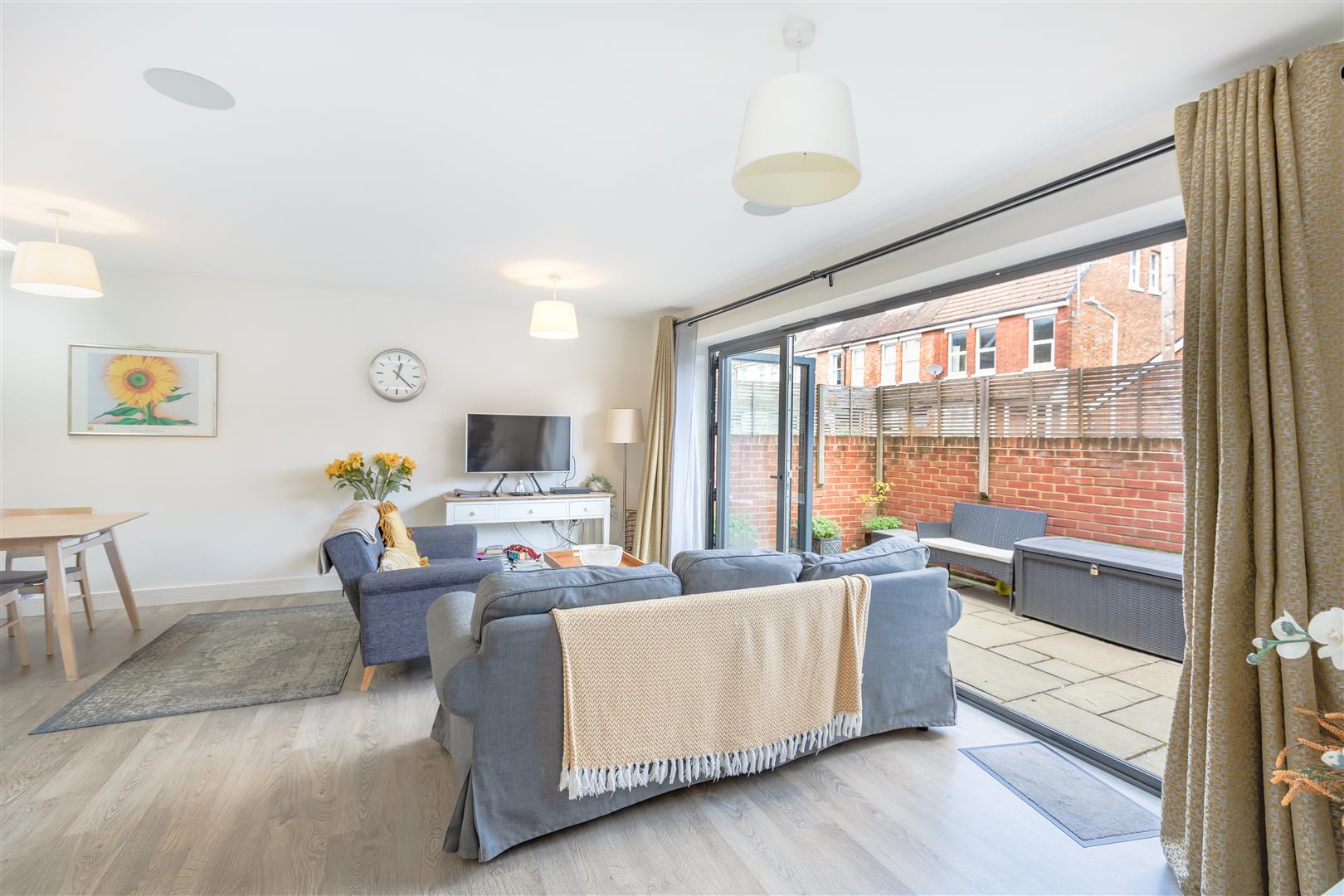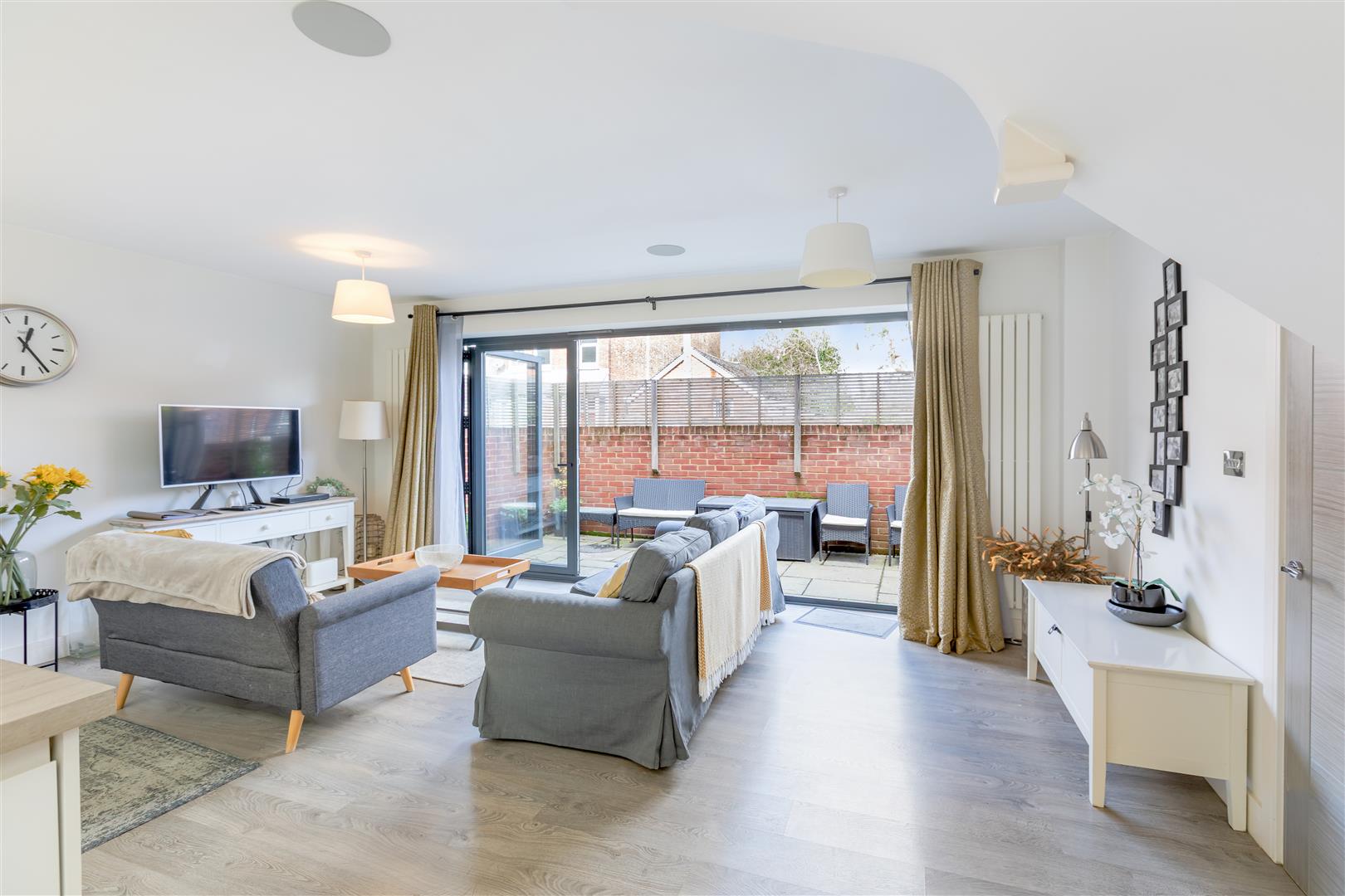 Above the kitchen and dining space, sun lights in the ceiling bring in streams of natural daylight, enhancing the sense of openness and creating a welcoming environment at all times of day. Bi-folding doors and a further patio door open directly onto the front courtyard garden, effectively extending the living space outdoors. This private courtyard is ideal for garden furniture, summer dining or evening drinks with friends, with a side gate giving direct access back to the driveway. While the outside space may be compact, the design makes it highly usable, and with numerous parks and green spaces close by, there is no shortage of outdoor lifestyle options on the doorstep.