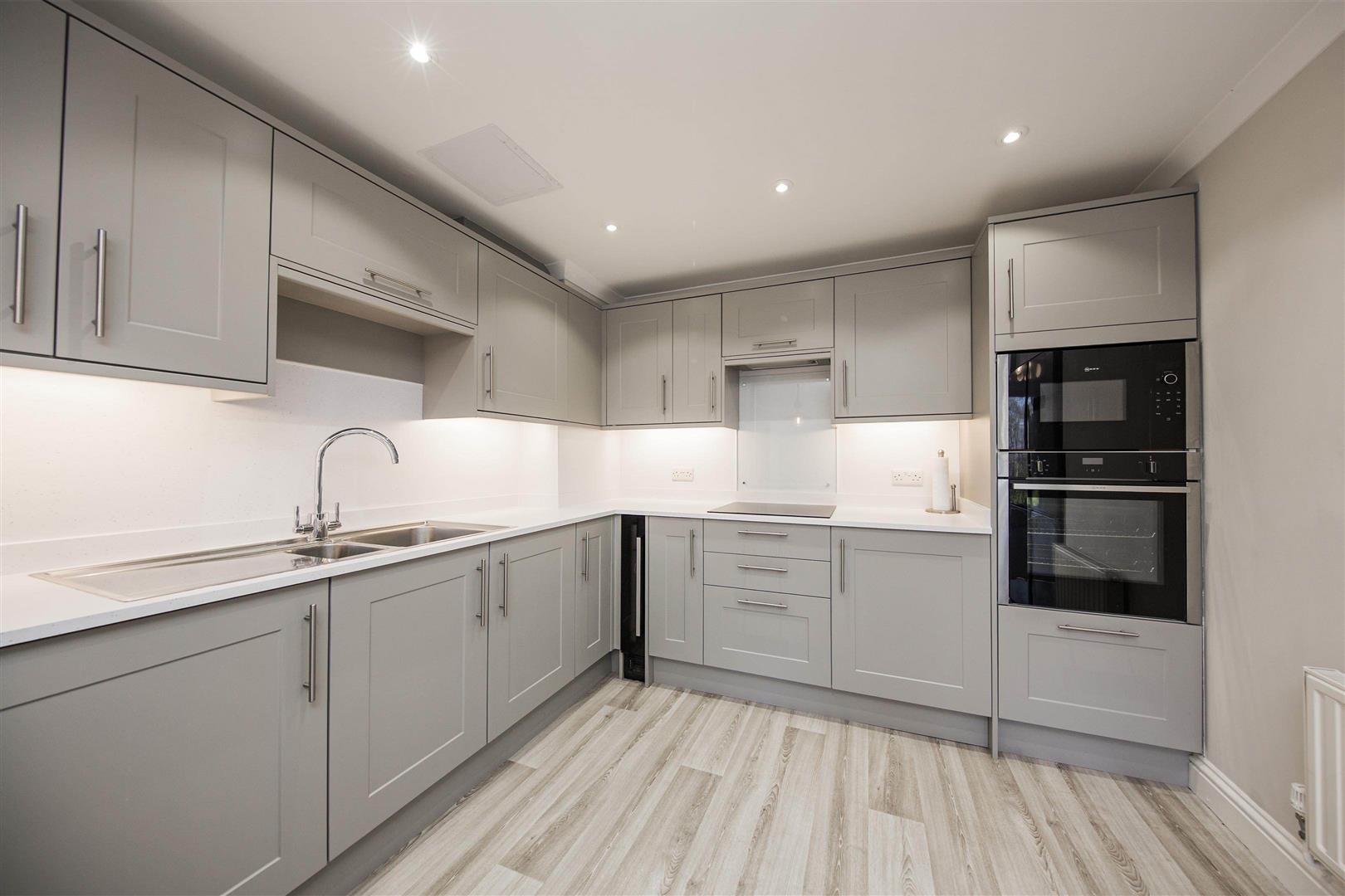 Recently fitted immaculate kitchen with integrated appliances including fridge freezer, oven, hob, dishwasher and washer dryer machine.