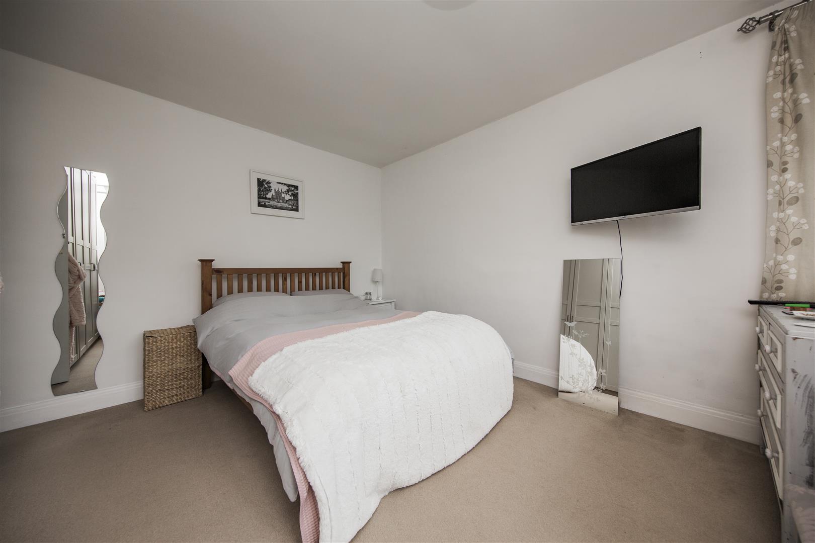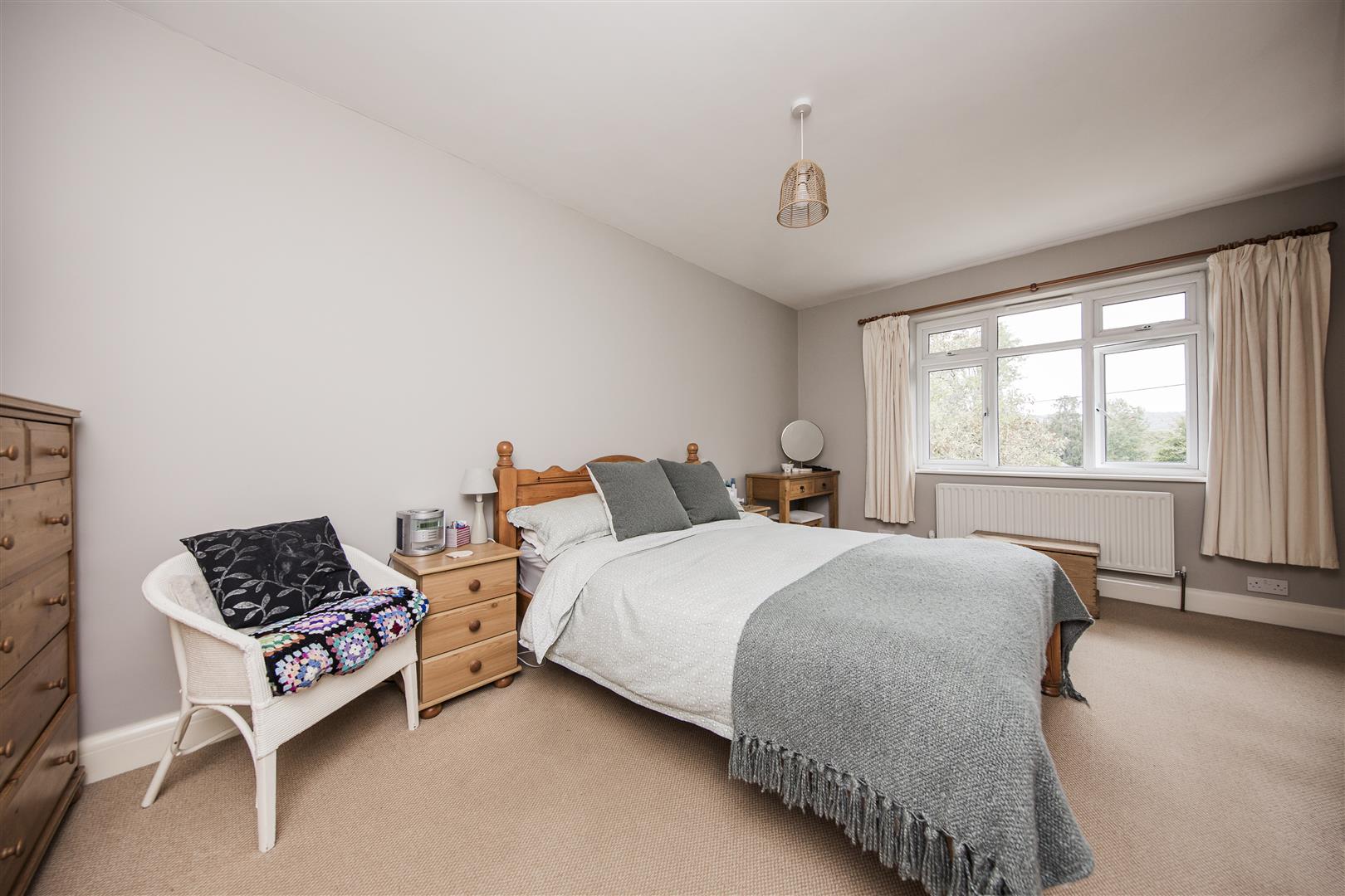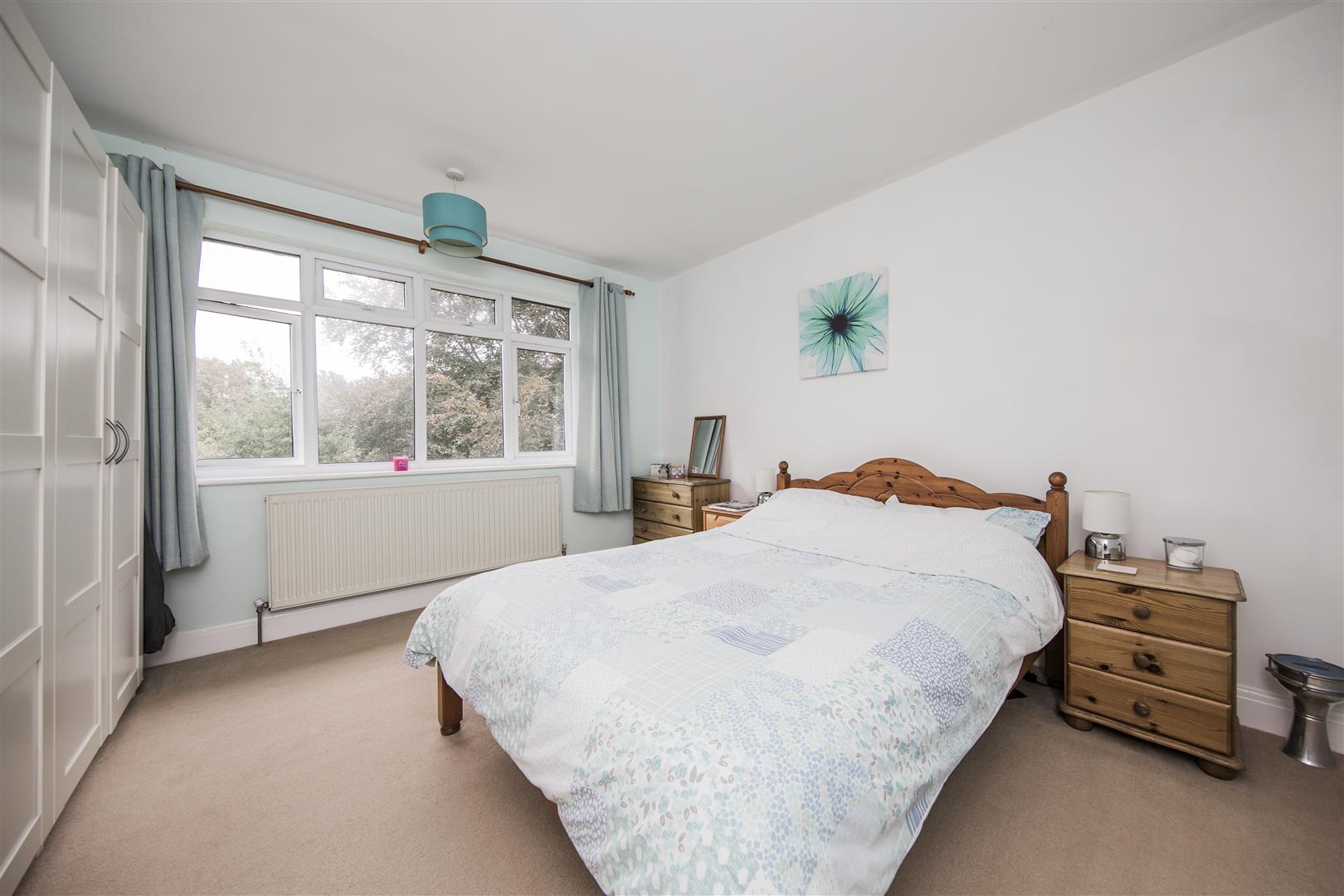 The master bedroom is generously proportioned, featuring a large window with garden views and built-in wardrobes along one wall. It benefits from an en suite shower room, providing privacy and convenience.