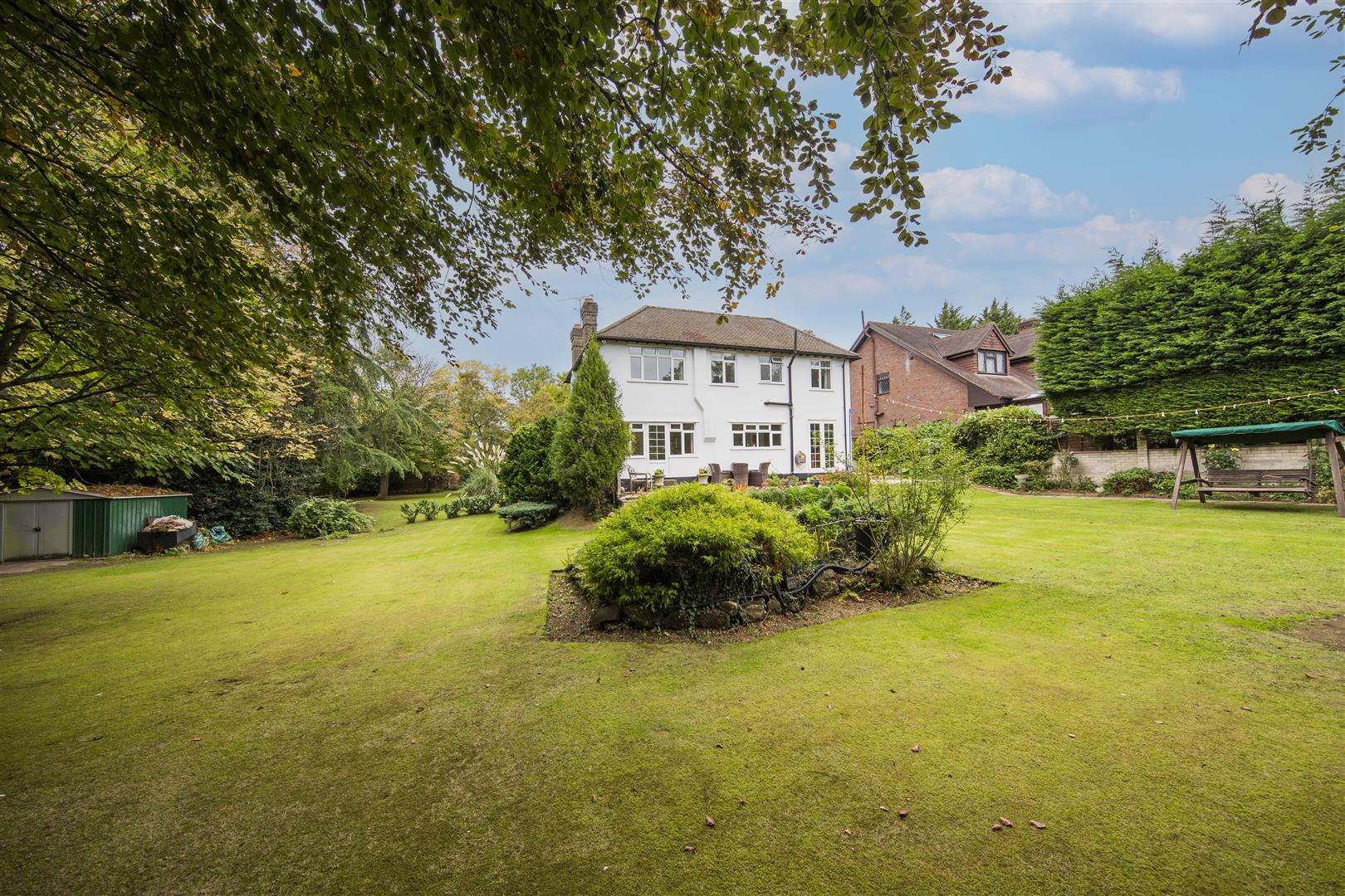 A beautifully maintained rear garden offers a generous expanse of lawn bordered by mature trees and shrubbery, creating a private and tranquil outdoor space. There are flower beds and various seating areas, perfect for enjoying the outdoors or entertaining guests. This wraps around the side of the house to a large front garden offering shading with trees and further lawn area. A great opportunity to extend this home within a good sized plot.
