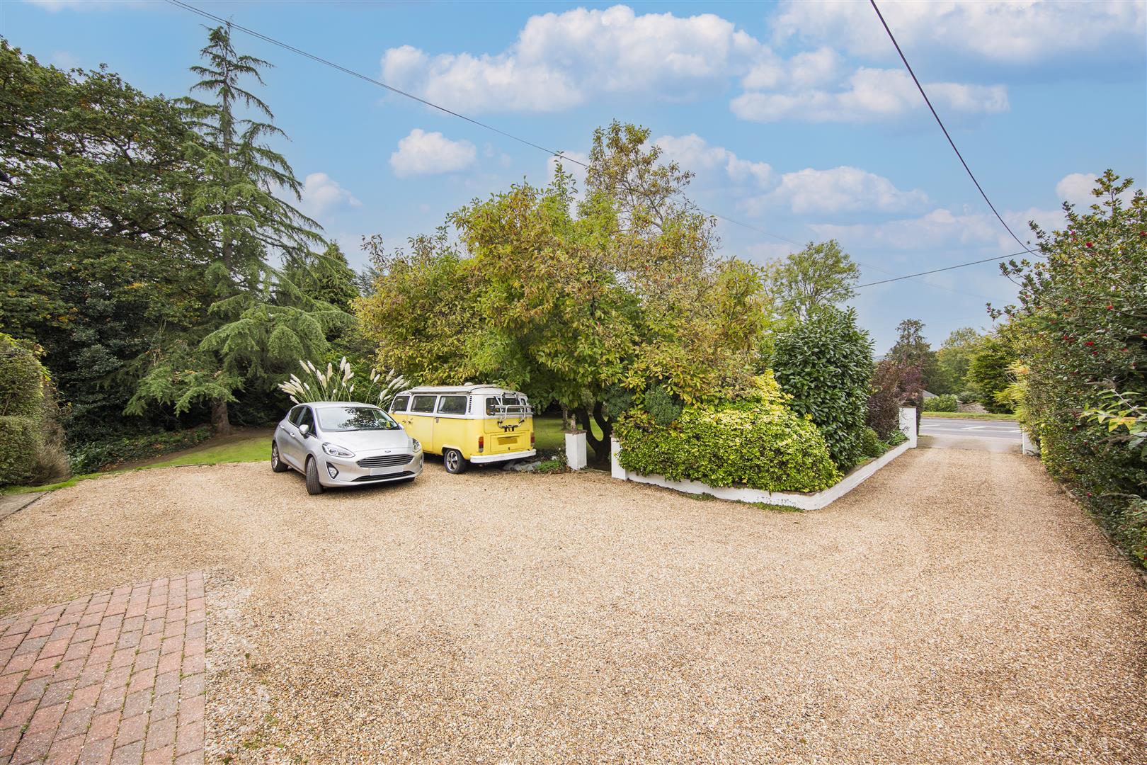 A long gravelled drive runs from the road opening up to a large parking area for multiple cars and access to the integral garage.