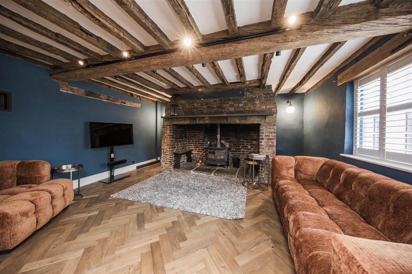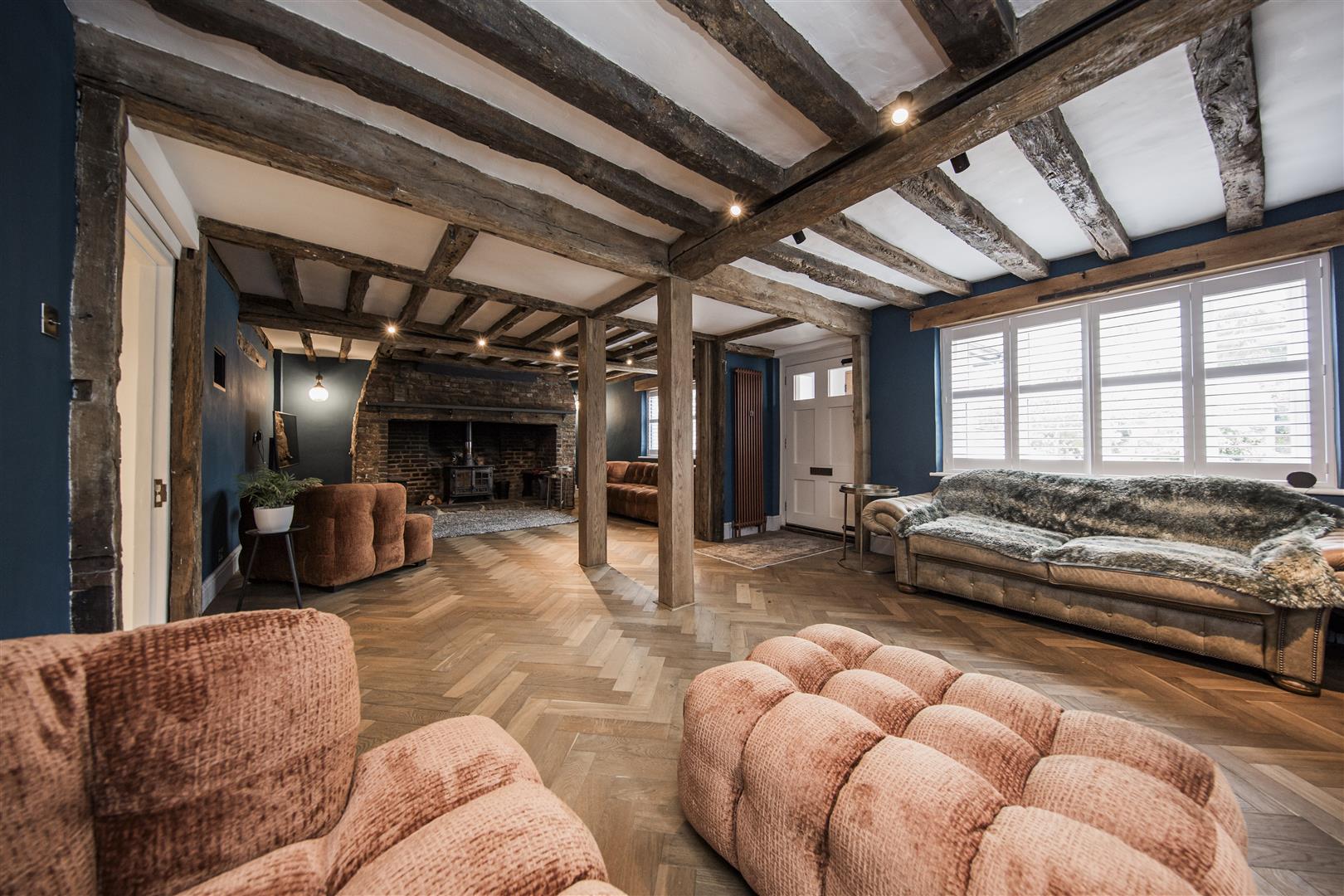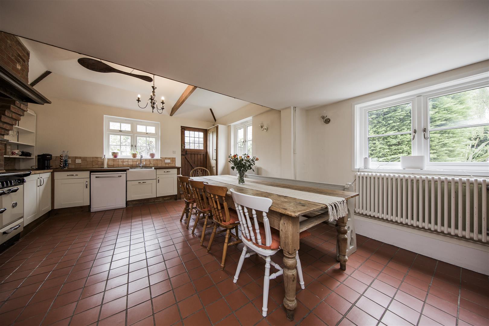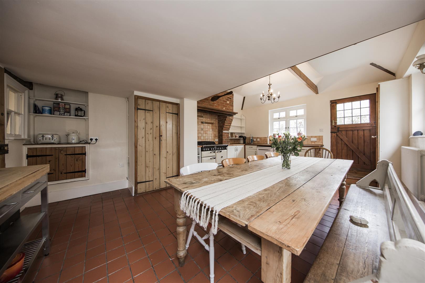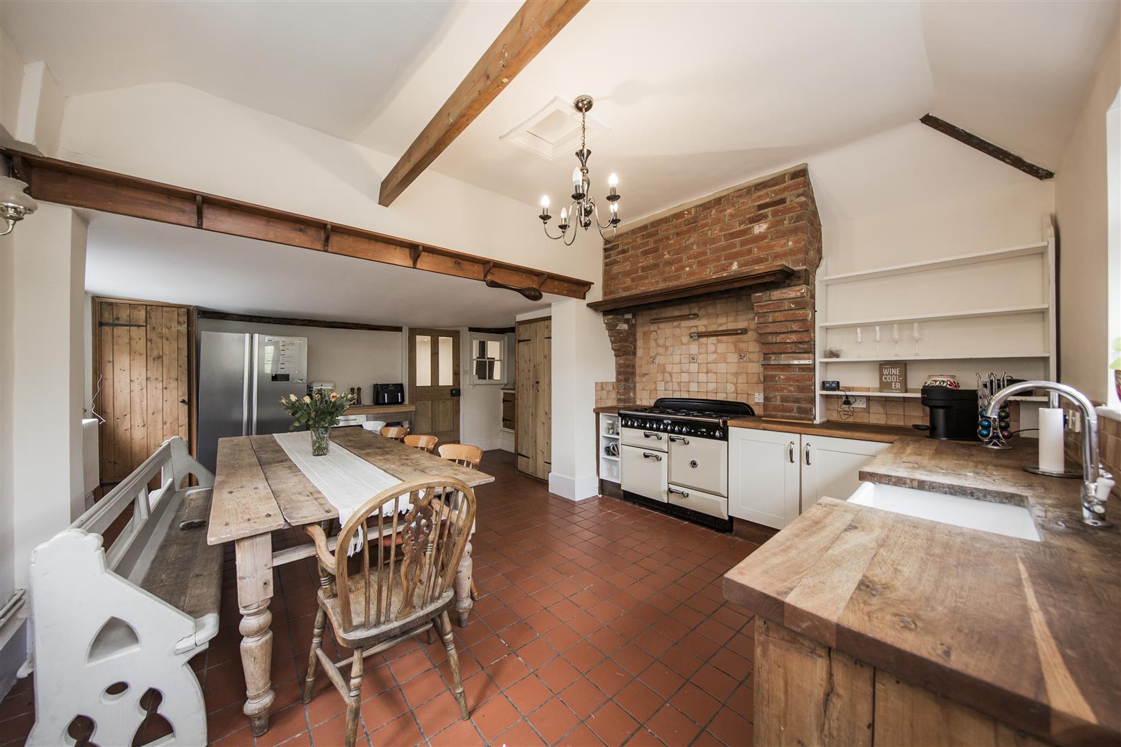 Red Lion House has recently undergone refurbishment and offers the new buyer a turn key opportunity to purchase a home in the heart of the highly popular village of Offham. Full of period charm as you enter into one of the main reception rooms you are confronted by its inglenook fireplace with huge Bessemer beam, oak parquet herringbone flooring and exposed timber ribs to the ceiling. If you look closely you can see indications that beams have been reused from old ships as this was common in the time of build. A great characterful start to this fabulous home. Moving through to a central hallway the character continues with access to a pantry, downstairs cloakroom and stairs to the upper floors as well as the lower cellar chambers. A classic styled kitchen diner with range cooker, quarry tiled floor and shaker style kitchen units fits so well with this type of home and is one of the most used rooms in the house.