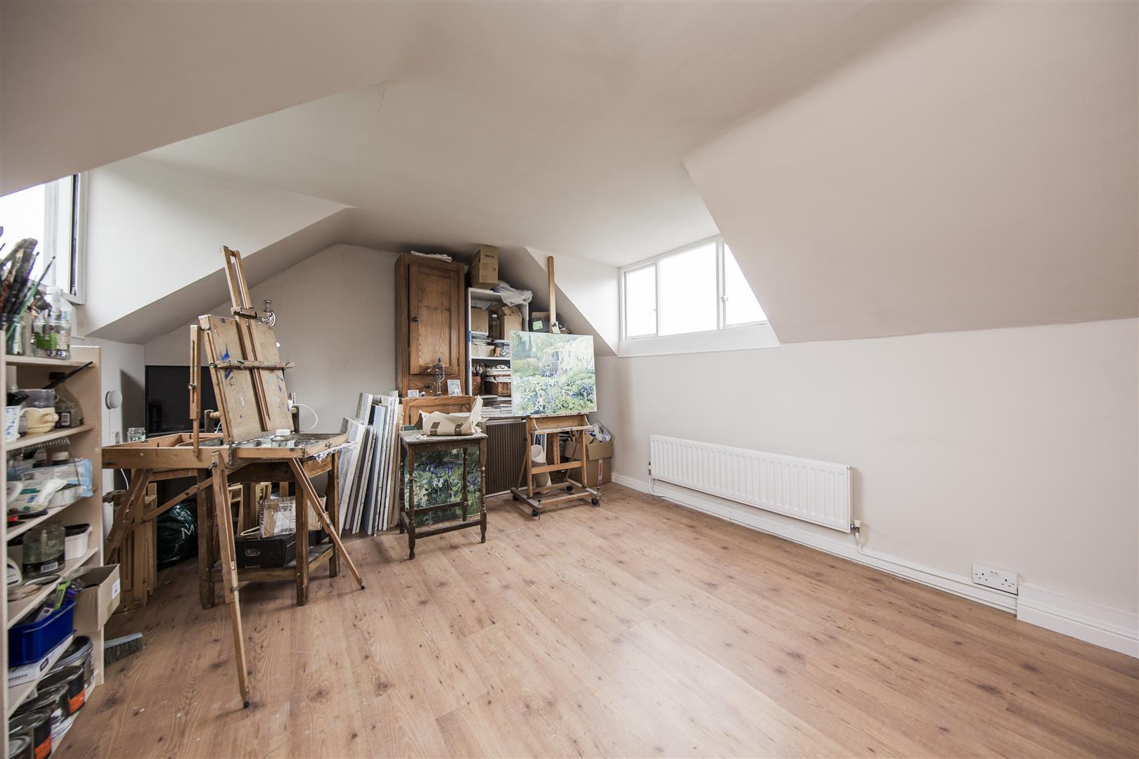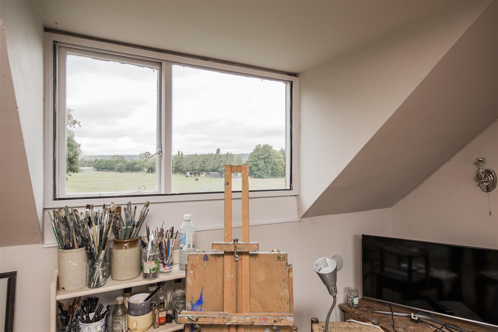 This first-floor bedroom is currently used as an artist's studio, it is a light, bright double aspect room. It is spacious enough for a double bed and includes a large window providing views onto the garden or countryside and the North Downs beyond.