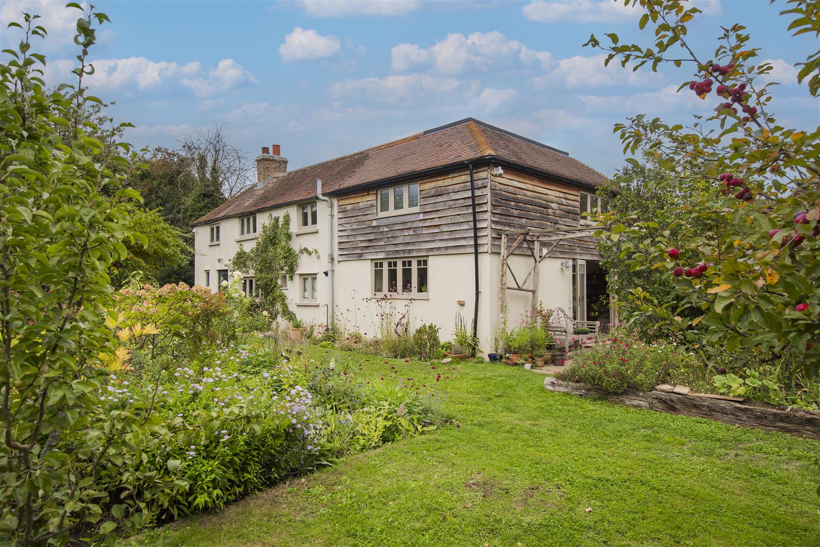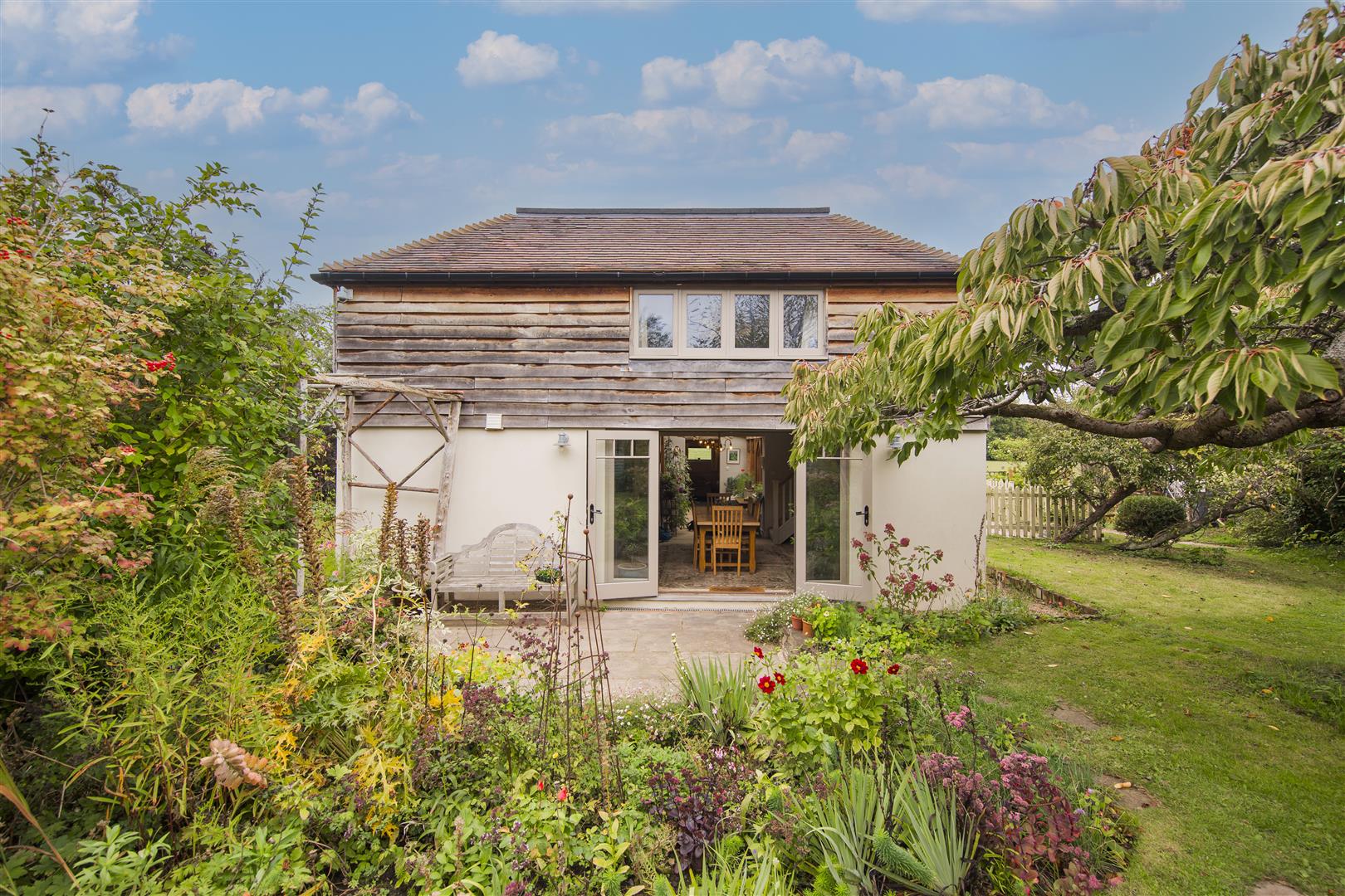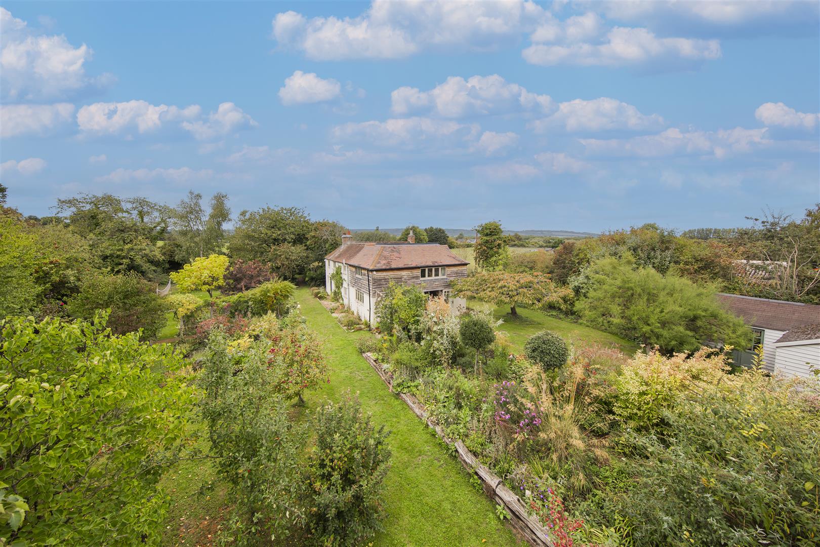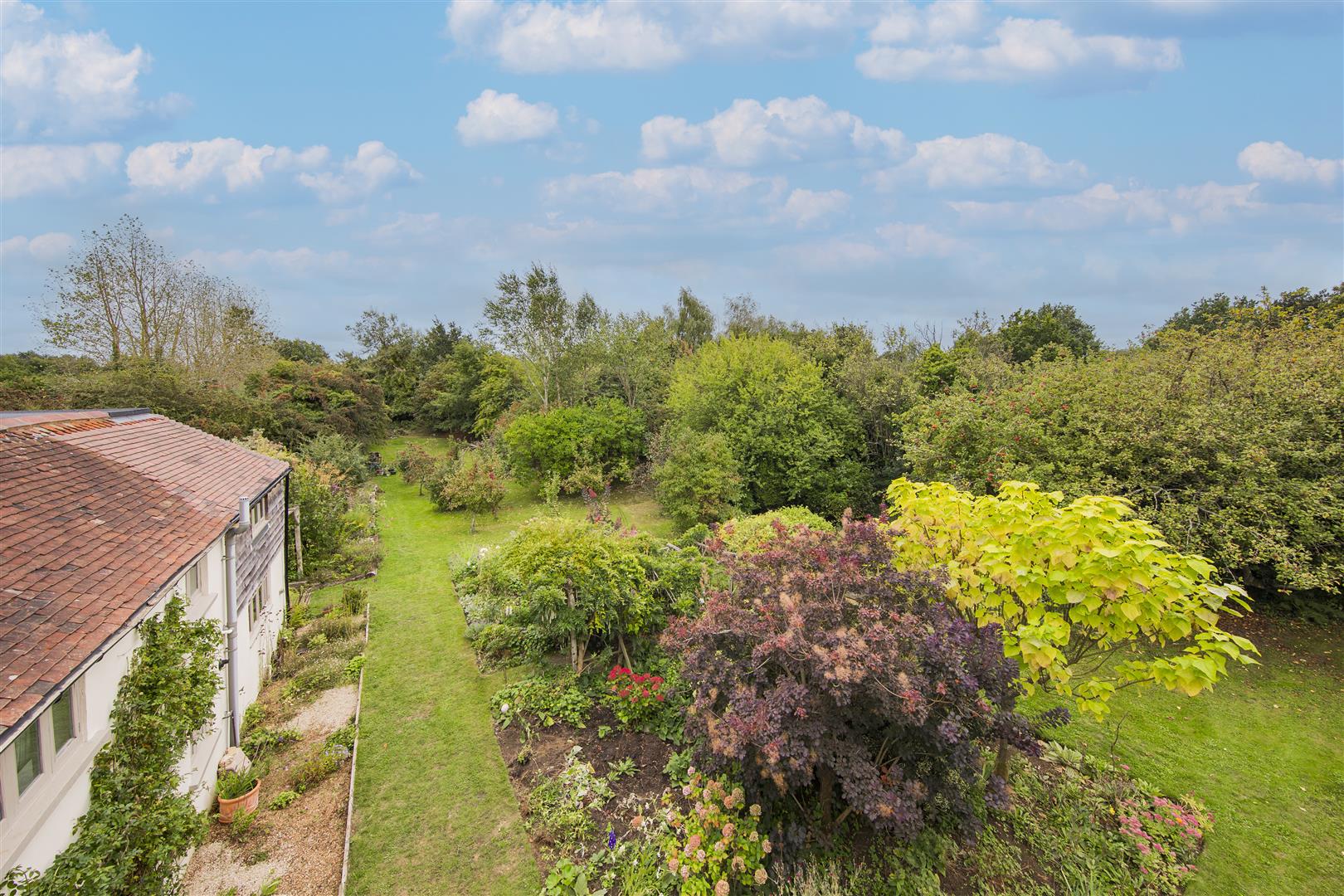 The romantic, wildlife friendly garden surrounding the property is a beautifully maintained informal space that blends natural woodland charm with cultivated beds. Mature trees and a vast variety of shrubs and flowering plants provide privacy, colour, and texture throughout the seasons. There are several seating areas including a paved patio beside the house and lawned spaces framed by borders filled with perennials and climbers. Additional features include a wisteria-covered pergola, a sunken garden with a pond, and garden sheds, all set within a tranquil rural setting with views over the surrounding countryside.