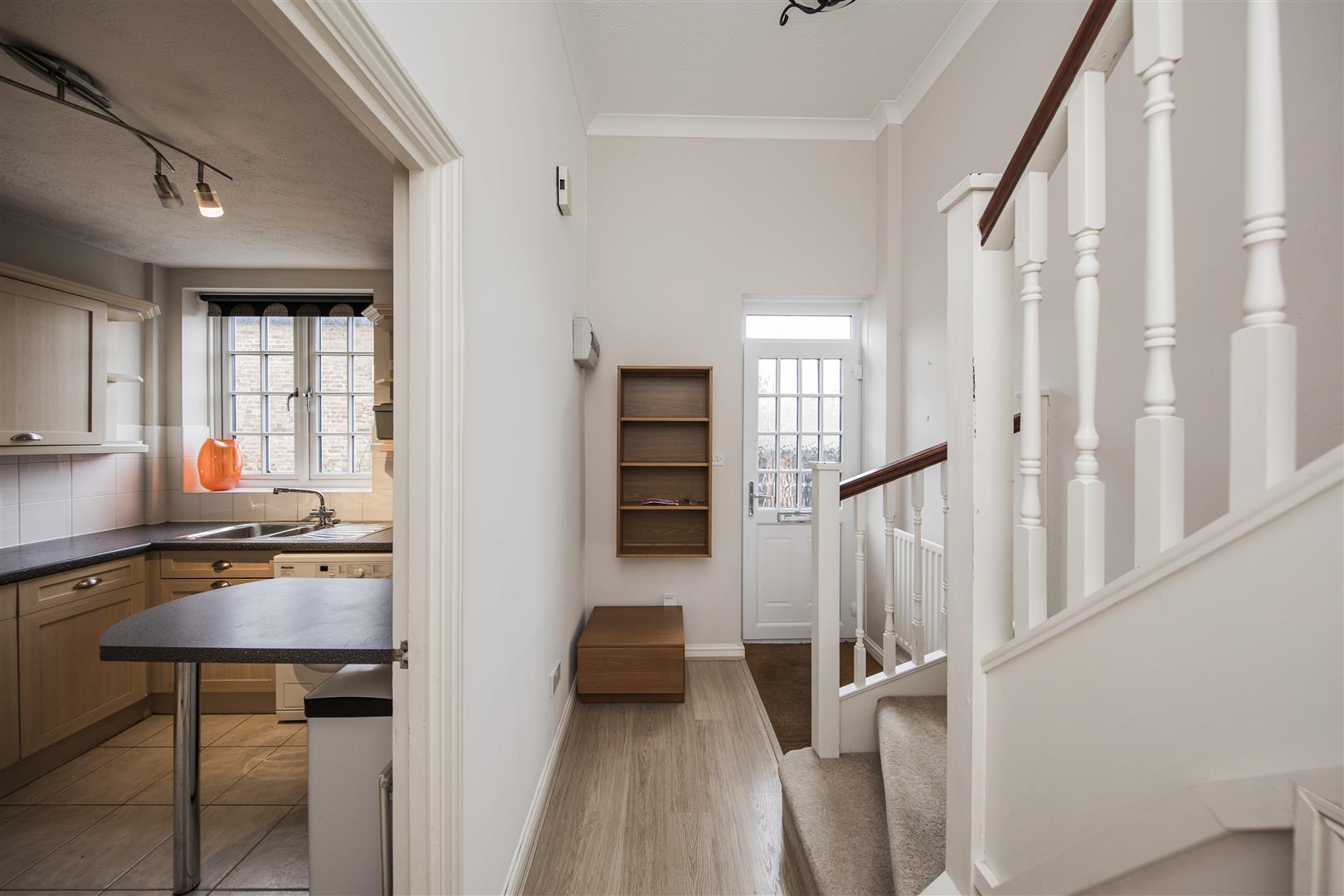 well fitted with a selection of base and wall units plus appliances comprising, integrated oven with ceramic hob/extractor above, washing machine, new fridge freezer. Expansive area of work surface with numerous electrical sockets above. Separate 'Island'' breakfast bar. Stainless Steel sink with draining, Tiled flooring, roller blind.
