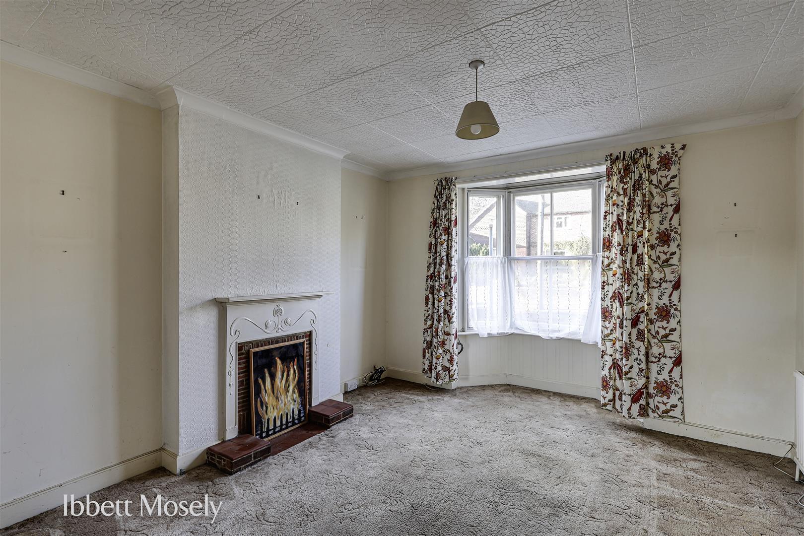 With radiator, bay window to the front, tiled and decorative surround to a fireplace with quarry tiled hearth (Sealed). The original door to the entrance hall has been sealed. Wide arch to the dining room.